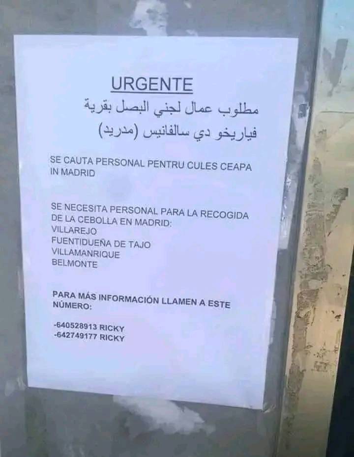 قرية فياريخو دي سالفنيس مدريد تبحث عن عمال لجني بصل من عدة جنسيات